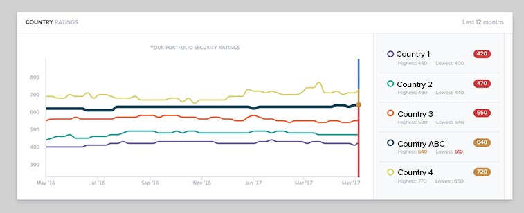 Sovereign Security Ratings is a subscription based platform that enables customers to measure, monitor, and investigate the cybersecurity risk of nation states and their critical infrastructure companies. Customers have the ability to benchmark the security performance of their nation against others, look at the how their key industries perform compared to those in other nations, and pinpoint threats occurring within their geographic area. This information is made available through a Sovereign Security Ratings portal as well as an API to allow for integration with other existing platforms